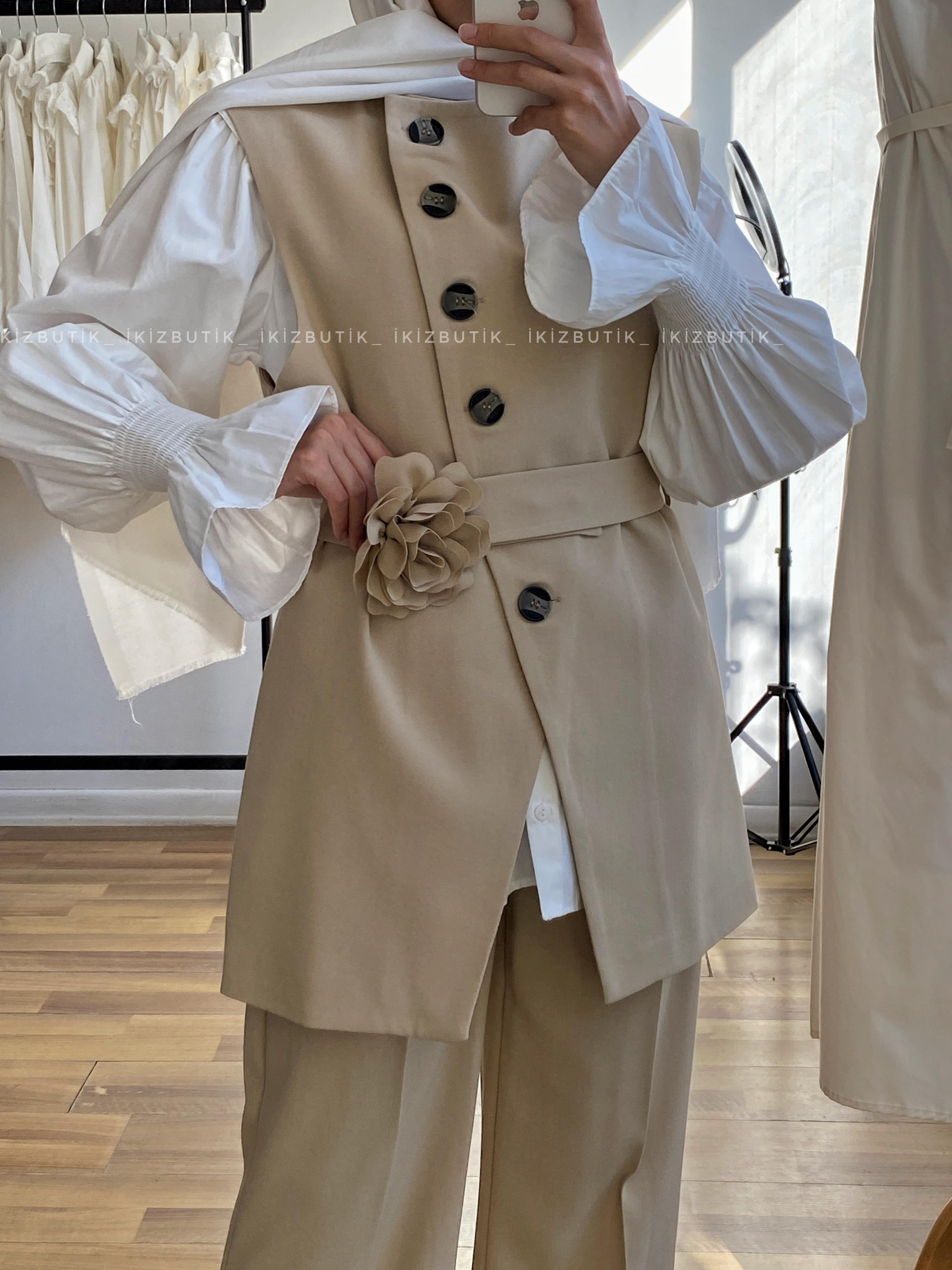 GÖMLEK TAKIMA DAHİL DEĞİLDİR. LADY GÖMLEK İLE KOMBİN YAPILMIŞTIR GÖMLEK YAKALARI YELEK İÇİNDE TUTULARAK )